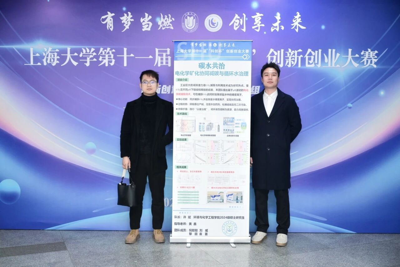 我院坚持创新实践育人,依托“科创杯”等赛事以赛促创、以赛促学,精选优秀项目,锤炼学生科创本领,点燃师生双创激情,让青春智慧投身生态文明建设,服务国家发展,持续深化创新创业教育改革,拓宽卓越人才培养通道,为新质生产力注入澎湃青春动能。科创引领,绿水青山,上大环化学子,将以科技之笔,绘就碳中和时代的碧水蓝天。