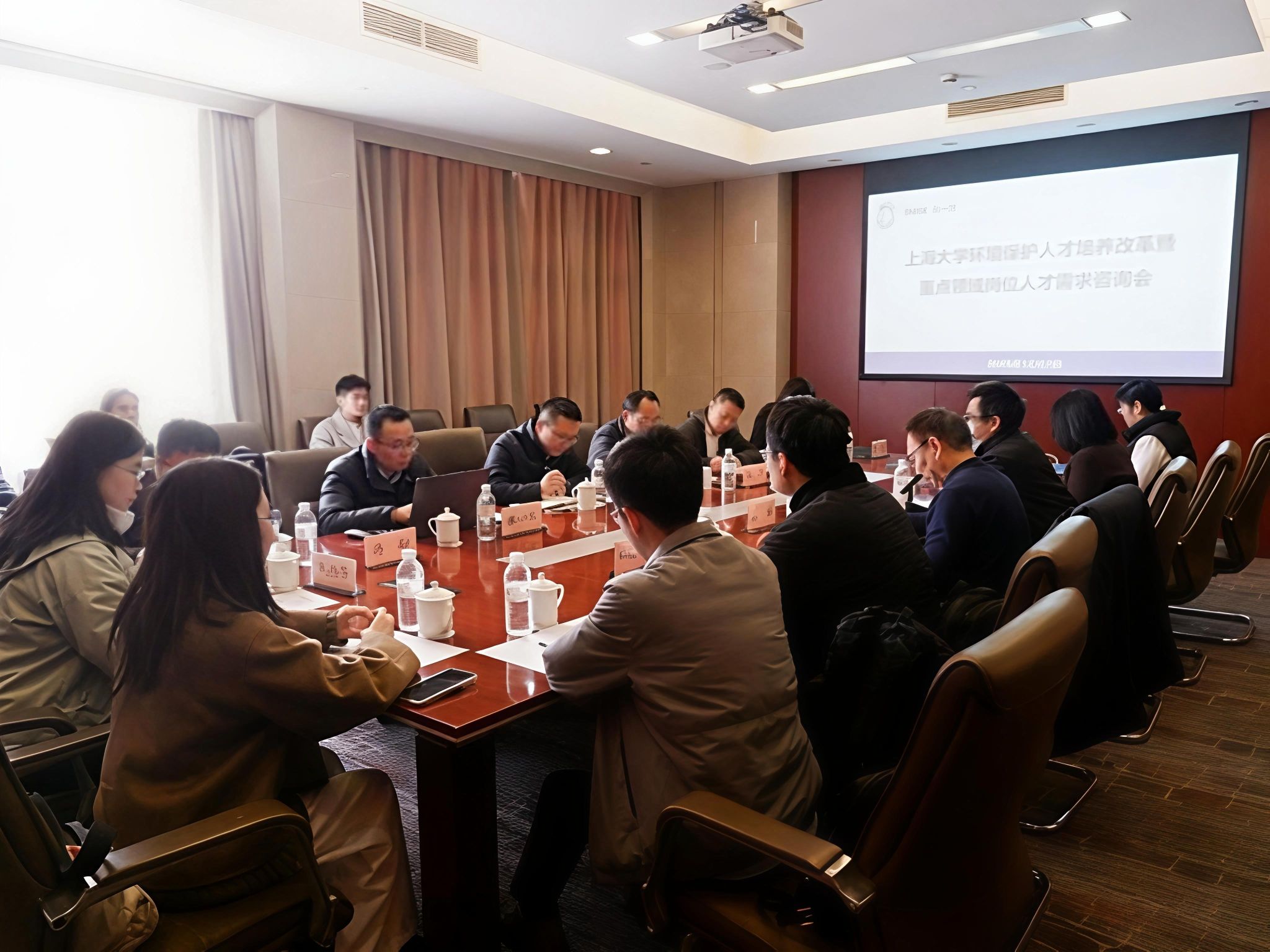 “环境保护人才综合培养改革暨重点领域岗位人才需求咨询会”于宝山校区乐乎新楼上善厅召开。会议由环化学院副院长黄鑫主持,上海城市水资源开发利用国家工程中心有限公司总经理张东、上海市建筑科学研究院有限公司建筑材料与固废利用研究所所长陈宁、上海城投老港基地管理有限公司副总经理马聪、上海城市环境集团有限公司人力资源部专业总监张艳、宝武集团环境资源科技有限公司工业环境保障部副书记崔小文、上海华力集成电路动力基建部副科长魏燕芳、上海城投原水公司党委书记/副总经理孟磊等专家与企业代表莅临指导。与会嘉宾围绕新时代环保人才培养展开深度对话与共建研讨,共同推动高校人才供给与行业实际需求的有效衔接。