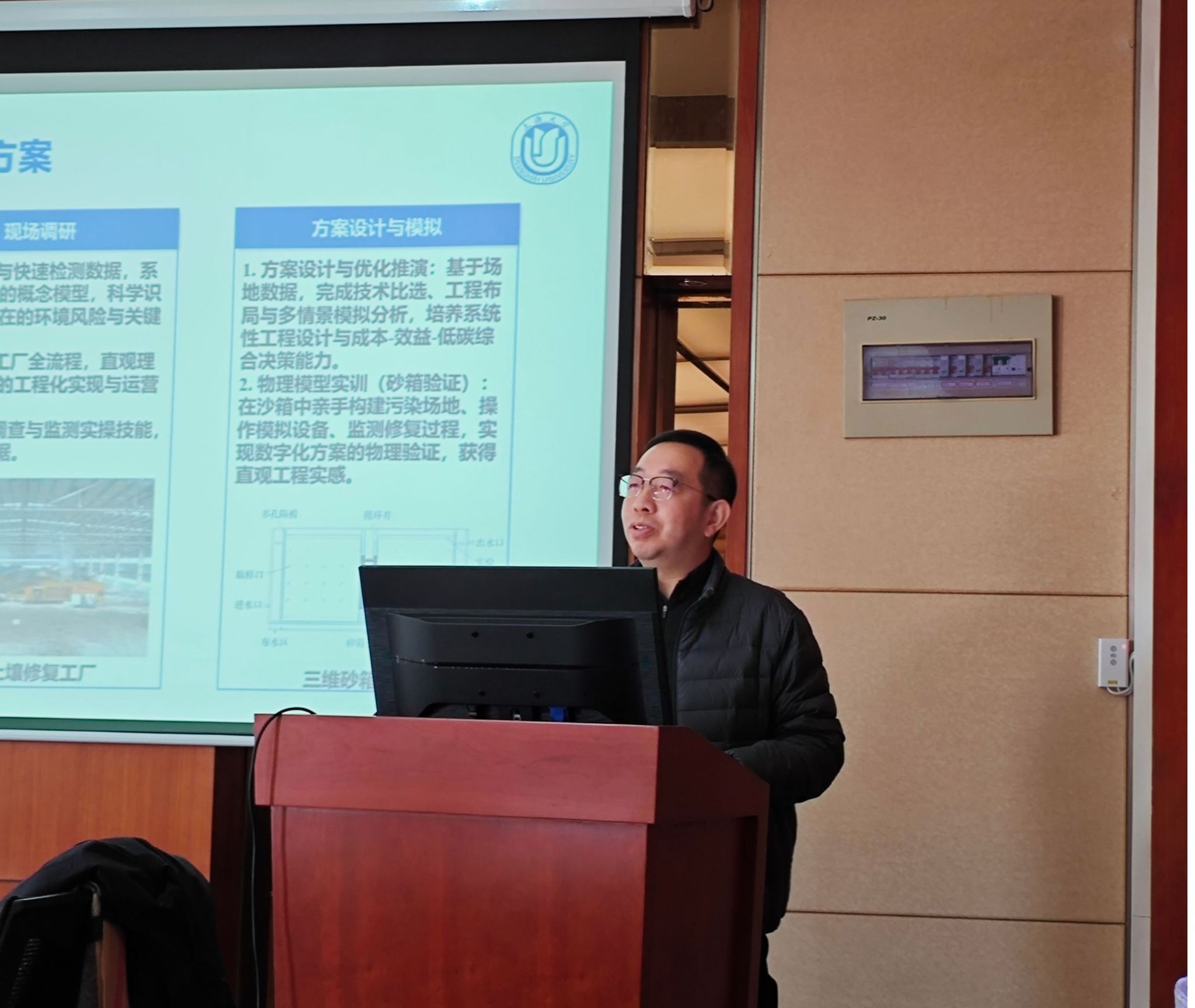 会议伊始,里斯本学院副院长、环境系主任刘强从“需求分析、目标定位、综合改革、保障机制”四个方面,系统介绍了上海大学环境保护人才培养综合改革方案。该方案紧扣产业绿色化、数字化与融合化转型对复合型人才的需求,旨在通过知识体系重构、实践能力强化与培养环节贯通,搭建校企协同育人的总体框架。