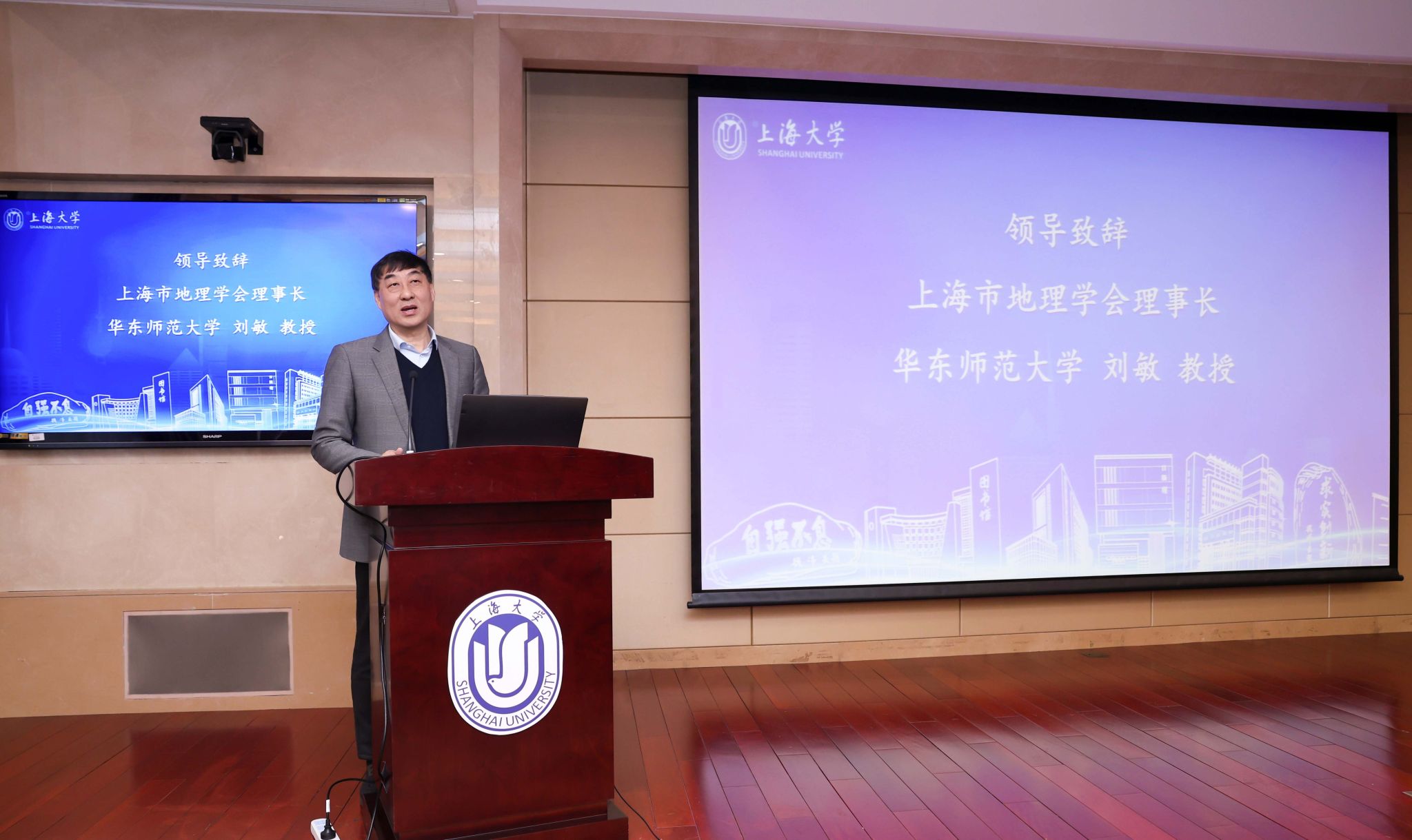 近日,上海市地理学会2025年学术年会暨理事会扩大会议在上海大学宝山校区举行。会议由上海市地理学会主办,上海大学环境与化学工程学院承办。上海大学党委副书记、副校长胡大伟出席会议并致辞。上海大学环境与化学工程学院党委书记钱冬英出席会议,党委副书记、院长李辉主持开幕式。