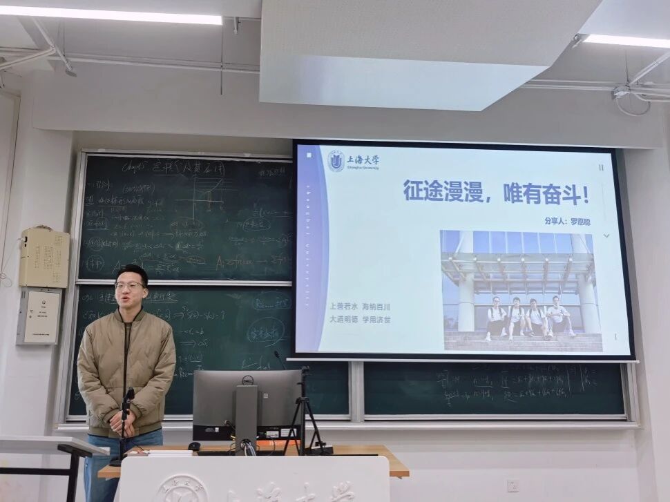 罗愿聪博士以“征途漫漫,唯有奋斗”为主题,分享了从本科到硕博的成长轨迹。他展示了个人大学十项任务清单的完成情况,从入党、学业、学生工作到竞赛创业,并分享参与志愿服务与社会实践的感悟,全方位展现了党员的责任与担当。他强调树立清晰目标的重要性,鼓励新生“走出寝室、勇敢尝试”。结合自身科研经历与“互联网+”“创青春”等赛事参赛经历,他为新生提供了科研与实践的宝贵经验。