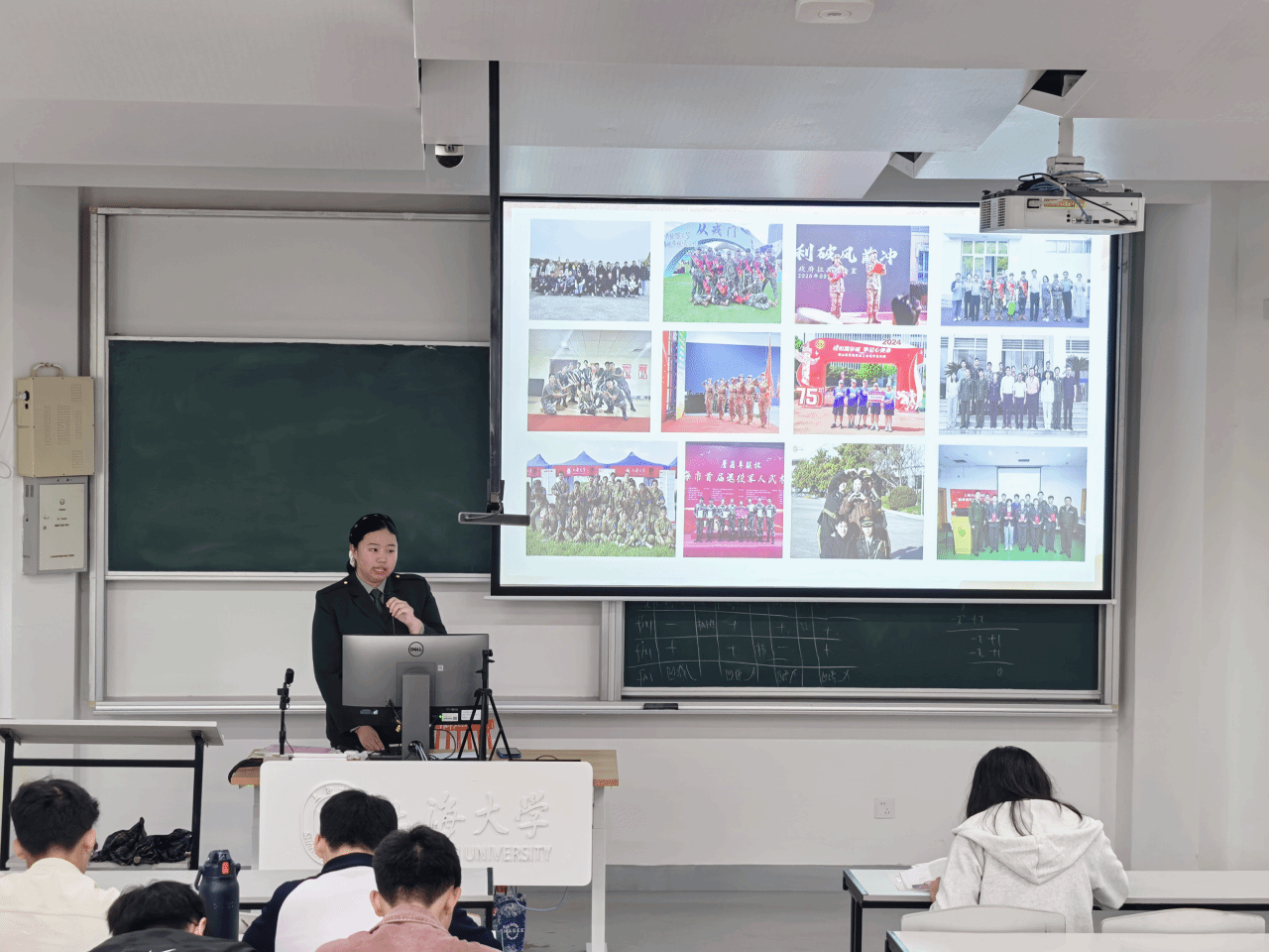 赵文菁同学首先分享了从校园到军营的抉择与成长,从队列训练到战术演练,从理论学习到实操考核,每一个成长瞬间都展现了当代大学生士兵的坚韧与担当。她谈及军旅收获时坦言,军营不仅锤炼了体魄意志,更让她读懂 “责任” 与“奉献”的重量。结合重大任务经历,她用鲜活故事展现军人使命,还详解军营作息、训练体系等内容,让学子对军营生活有了直观认知。