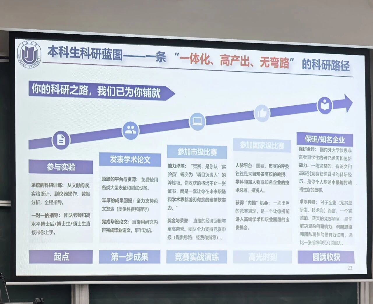 王老师通过荣誉墙展示了团队指导学生获得的各类竞赛奖项,毕业生在高校科研院所深造任职,以及在行业龙头企业核心岗位就职的发展成绩单。他重点拆解了“新生入门—参与课题—发表论文—竞赛获奖—深造就业”的成长路径,鼓励新生从基础实验技能训练做起,主动加入科研团队,并解答了同学们关于课题方向选择等方面的疑问。