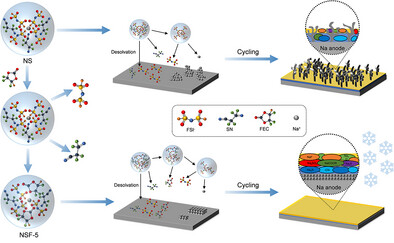钠金属负极(SMA)以其极高的理论比容量与低电化学位势被视为实现高能量密度电池的有力候选。然而,钠金属高度活泼易导致枝晶生长与固体电解质界面膜(SEI)不稳定,严重限制其实用化。电解质工程能够从根本上影响溶剂化结构与界面产物,因此是解决SMA稳定性的关键路径之一。传统将氟代碳酸乙烯酯(FEC)仅用作微量添加剂以获得含F无机SEI的做法,忽视了其作为共溶剂在调节电解质溶剂化与去溶剂化动力学方面的潜力。