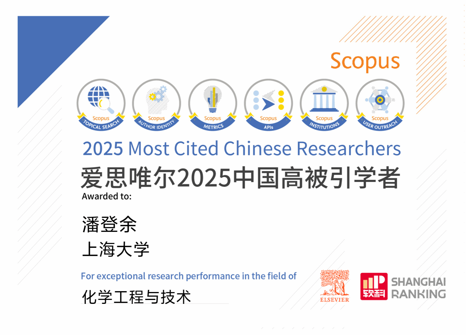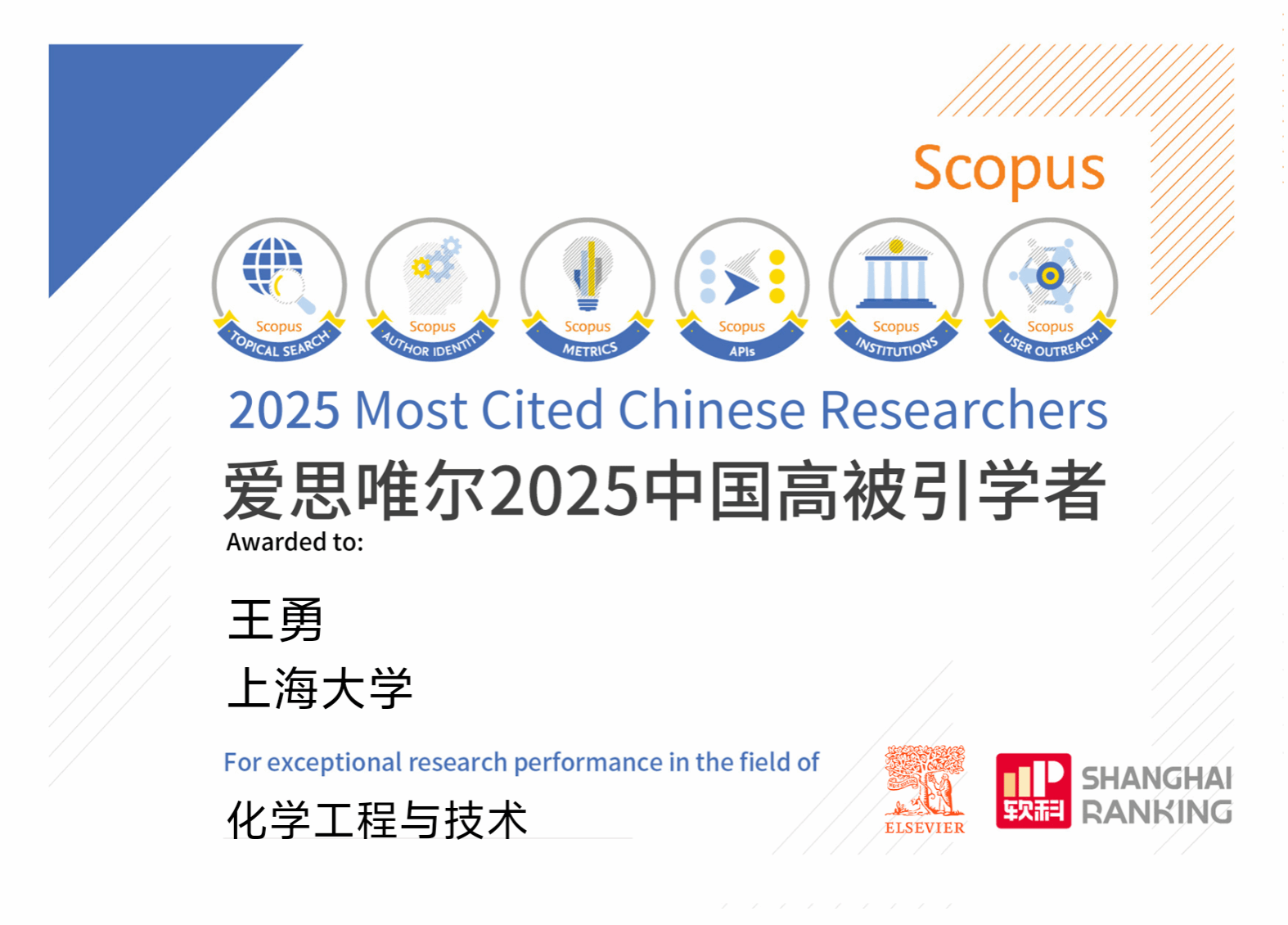 近日,爱思唯尔(Elsevier)正式发布2025“中国高被引学者”(Highly Cited Chinese Researchers)榜单。我院王勇教授、潘登余研究员再次成功入选。其中,王勇教授已连续10年上榜,潘登余研究员亦连续5年获此殊荣,充分体现了我院在化学工程与技术学科领域的学术竞争力与科研影响力。