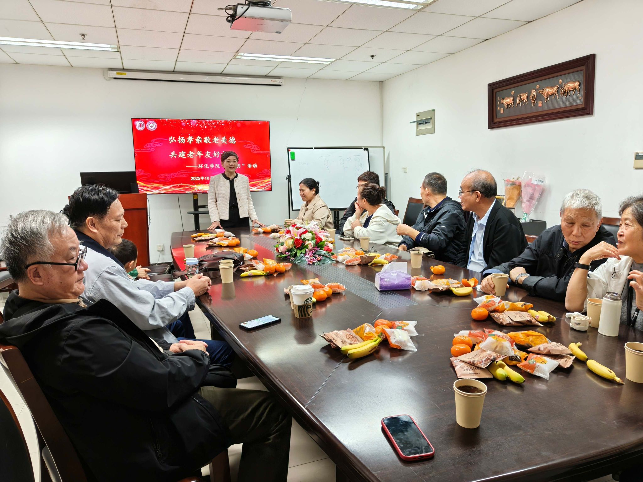重阳又至,桂香满庭。10月24日,我院环境系、化工系举行“弘扬孝亲敬老美德 共建温暖和谐校园”重阳节团圆会活动,学院退休老教师应邀参加活动,共同庆祝重阳传统佳节。学院党委领导、工会委员和教师代表出席团圆会。团圆会由学院党委副书记、分工会主席孙延枫主持。